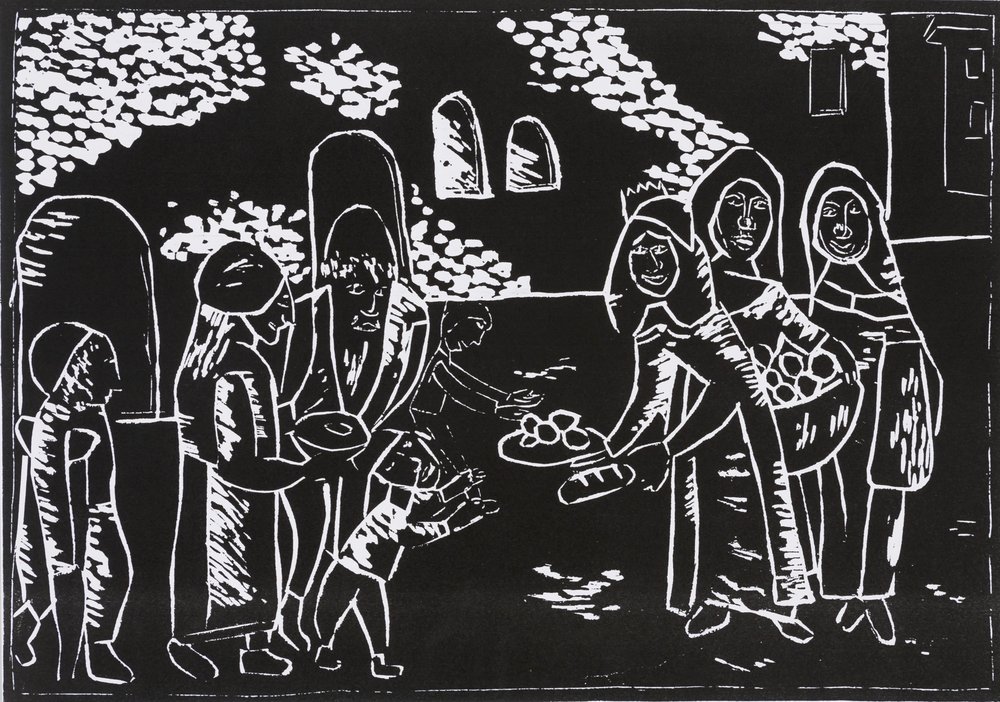 | Technik: | Druck, Linolschnitt |