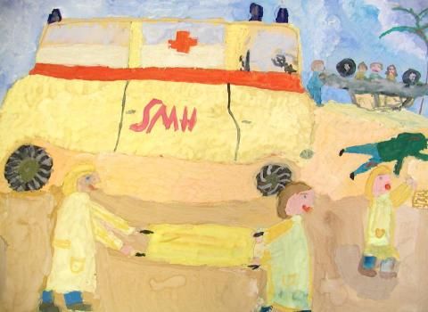 Vater fährt Krankenwagen