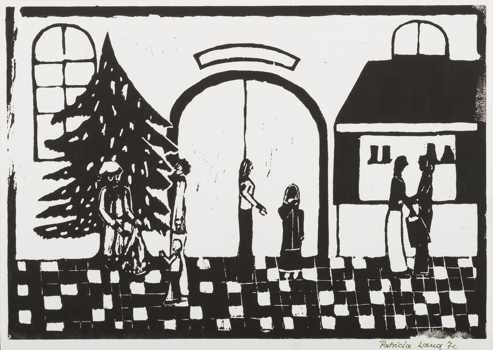 | Technik: | Druck, Linolschnitt |
